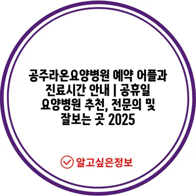 공주라온요양병원 예약 어플과 진료시간 공지 | 공휴일 요양병원 추천, 전연락 및 잘보는 곳 2025에 대해 알아보겠습니다.