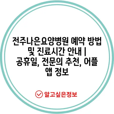 ✅ 전주나은요양병원 예약 방법과 꿀팁을 지금 알아보세요!