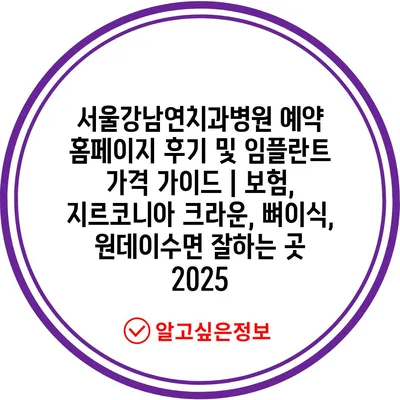 서울강남연치과병원 예약 홈페이지 후기 및 임플란트 가격 설명서 | 보험, 지르코니아 크라운, 뼈이식, 원데이수면 잘하는 곳 2025에 대해 소개합니다.