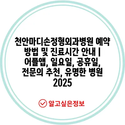 천안마디손정형외과병원 예약 방법 및 진료시간 공지 | 어플앱, 일요일, 공휴일, 전연락 추천, 유명한 병원 2025에 대한 내용을 소개합니다.