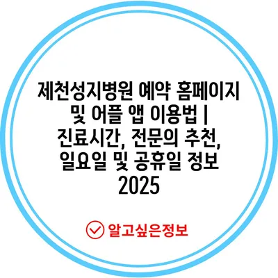 제천성지병원 예약 홈페이지 및 어플 앱 이용법 | 진료시간, 전연락 추천, 일요일 및 공휴일 정보 2025에 대해 알아보겠습니다.