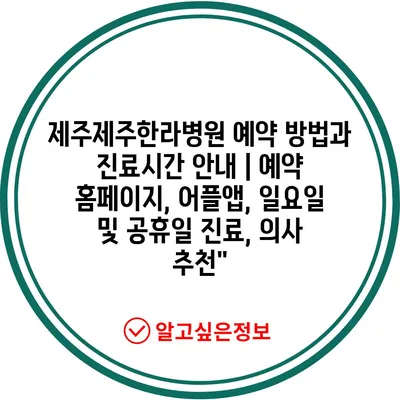 제주제주한라병원 예약 방법과 진료시간을 자세히 알아보세요.