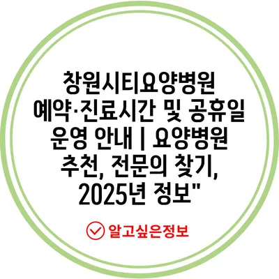 ✅ 창원시티요양병원의 예약 방법과 진료 시간을 한눈에 확인해보세요.
