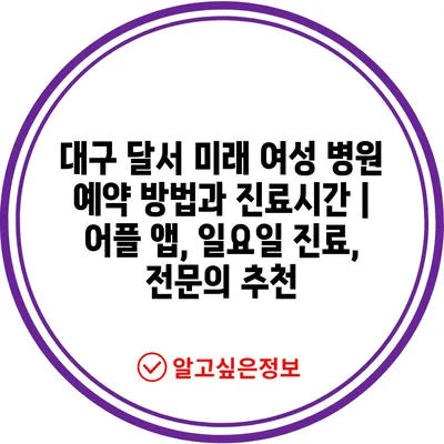 ✅ 대구 달서 미래 여성 병원의 예약 방법을 자세히 알아보세요!