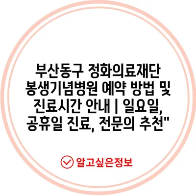 부산동구 정화의료재단 봉생기념병원 예약 방법 및 진료시간 공지 | 일요일, 공휴일 진료, 전연락 추천에 대해 자주 묻는 질문 TOP 5