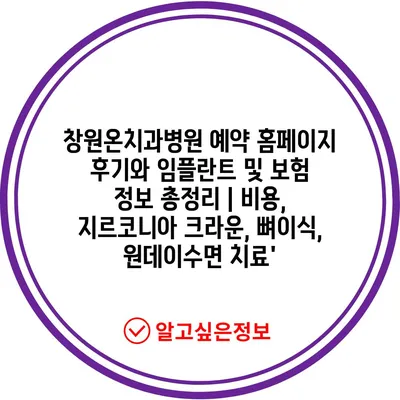 창원온치과병원 예약 홈페이지 후기와 임플란트 및 보험 정보 총정리 | 비용, 지르코니아 크라운, 뼈이식, 원데이수면 치료에 대해 알아보겠습니다.