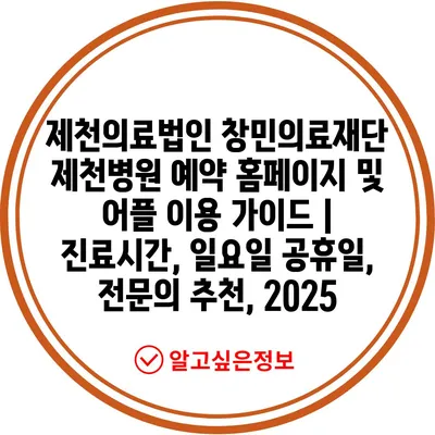 제천의료법인 창민의료재단 제천병원 예약 홈페이지 및 어플 이용 가이드 | 진료시간, 일요일 공휴일, 전문의 추천, 2025