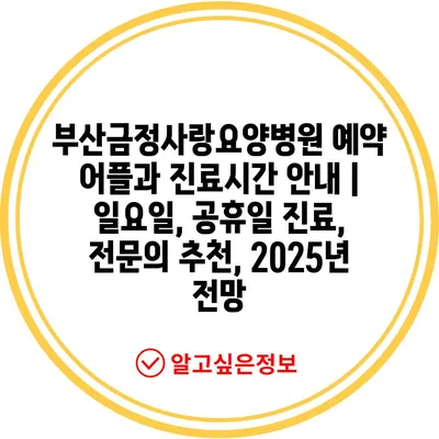 부산금정사랑요양병원 예약 어플과 진료시간 공지 | 일요일, 공휴일 진료, 전연락 추천, 2025년 전망 에 대해 자주 묻는 질문 TOP 5