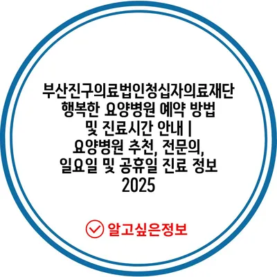 부산진구의료법인청십자의료재단 행복한 요양병원 예약 방법 및 진료시간 공지 | 요양병원 추천, 전연락, 일요일 및 공휴일 진료 정보 2025