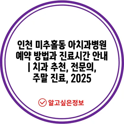 인천 미추홀동 아치과병원 예약 방법과 진료시간 공지 | 치과 추천, 전연락, 주말 진료, 2025 에 대해 자주 묻는 질문 TOP 5