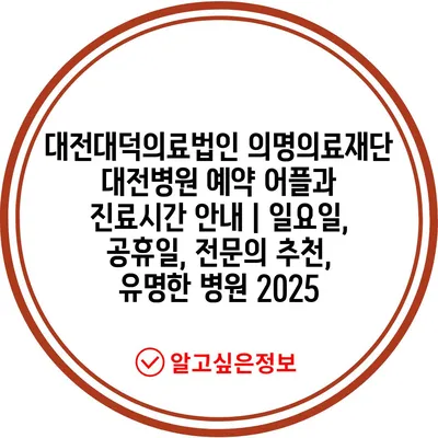 대전대덕의료법인 의명의료재단 대전병원 예약 어플과 진료시간 공지 | 일요일, 공휴일, 전연락 추천, 유명한 병원 2025 에 대해 자주 묻는 질문 TOP 5