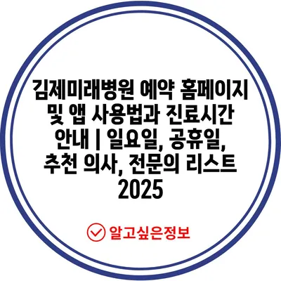 ✅ 김제미래병원의 예약 방법과 진료시간을 자세히 알아보세요.