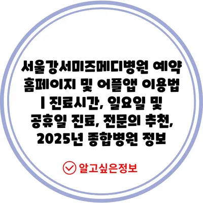 서울강서미즈메디병원 예약 홈페이지 및 어플앱 이용법 | 진료시간, 일요일 및 공휴일 진료, 전연락 추천, 2025년 종합병원 정보 에 대해 자주 묻는 질문 TOP 5