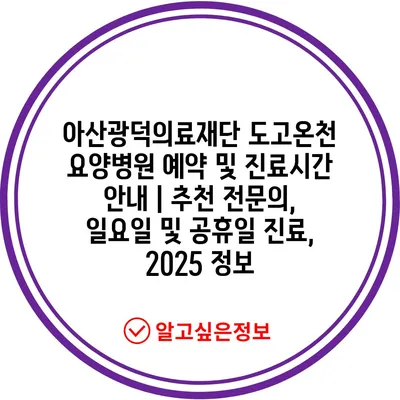 아산광덕의료재단 도고온천 요양병원 예약 및 진료시간 공지 | 추천 전연락, 일요일 및 공휴일 진료, 2025 정보에 대해 자주 묻는 질문 TOP 5
