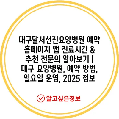 대구달서선진요양병원 예약 홈페이지 앱 진료시간 & 추천 전연락 알아보기 | 대구 요양병원, 예약 방법, 일요일 운영, 2025 정보 에 대해 자주 묻는 질문 TOP 5
