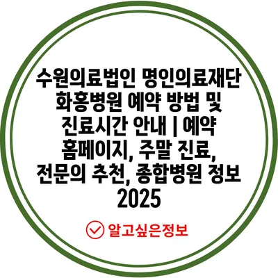 수원의료법인 명인의료재단 화홍병원 예약 방법 및 진료시간 공지 | 예약 홈페이지, 주말 진료, 전연락 추천, 종합병원 정보 2025 에 대해 자주 묻는 질문 TOP 5