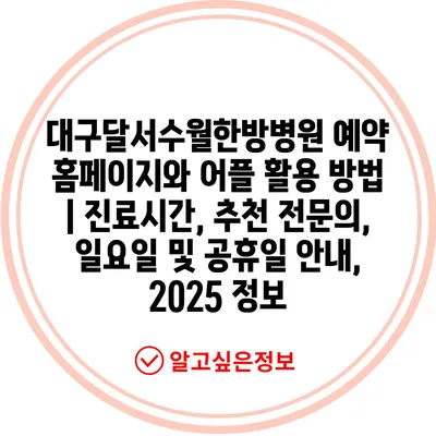 대구달서수월한방병원 예약 홈페이지와 어플 활용 방법 | 진료시간, 추천 전연락, 일요일 및 공휴일 공지, 2025 정보 에 대해 자주 묻는 질문 TOP 5