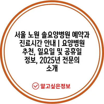 서울 노원 솔요양병원 예약과 진료시간 안내 | 요양병원 추천, 일요일 및 공휴일 정보, 2025년 전문의 소개