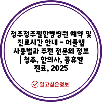 청주청주필한방병원 예약 및 진료시간 공지 – 어플앱 사용법과 추천 전연락 정보 | 청주, 한의사, 공휴일 진료, 2025