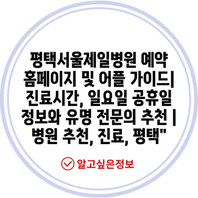 평택서울제일병원 예약 홈페이지 및 어플 설명서| 진료시간, 일요일 공휴일 정보와 유명 전연락 추천 | 병원 추천, 진료, 평택